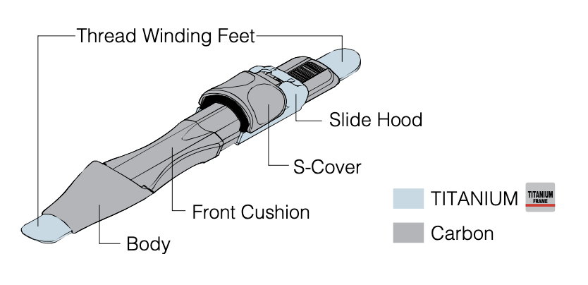 - Slide Hood, Stopper and Thread Winding Part: Titanium